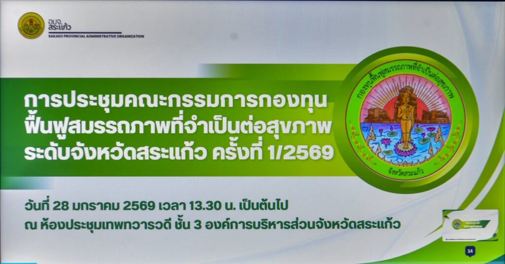 ❤️วันพุธที่ 28 มกราคม พ.ศ. 2569 เวลา 13.30 น. ณ ห้องประชุมเทพทวารวดี ชั้น3 องค์การบริหารส่วนจังหวัดสระแก้ว ประชุมคณะกรรมการ กองทุนฟื้นฟูสมรรถภาพที่จำเป็นต่อสุขภาพระดับจังหวัดสระแก้ว ครั้งที่ 1/2569 โดยมีนายแพทย์พัลลภ ยอดศิรจินดา นายแพทย์สาธารณสุขจัวหวัดสระแก้ว เป็นประธานการประชุม