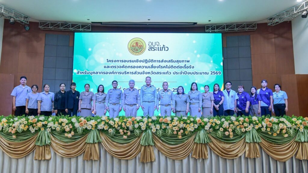 ⛑️ วันจันทร์ที่ 9 กุมภาพันธ์ พ.ศ. 2569 เวลา 09.00 น. นายฐานิสร์ เทียนทอง นายกองค์การบริหารส่วนจังหวัดสระแก้ว มอบหมายให้นายนิธิศ ผดุงลักษณ์ รองปลัดองค์การบริหารส่วนจังหวัดสระแก้ว เป็นประธานเปิดโครงการอบรมเชิงปฏิบัติการส่งเสริมสุขภาพและตรวจคัดกรองความเสี่ยงโรคไม่ติดต่อเรื้อรังสำหรับบุคลากรองค์การบริหารส่วนจังหวัดสระแก้ว ระหว่างวันที่ 9-12 กุมภาพันธ์ 2569 ณ ห้องประชุมพระปกเกล้า ชั้น 1 องค์การบริหารส่วนจังหวัดสระแก้ว