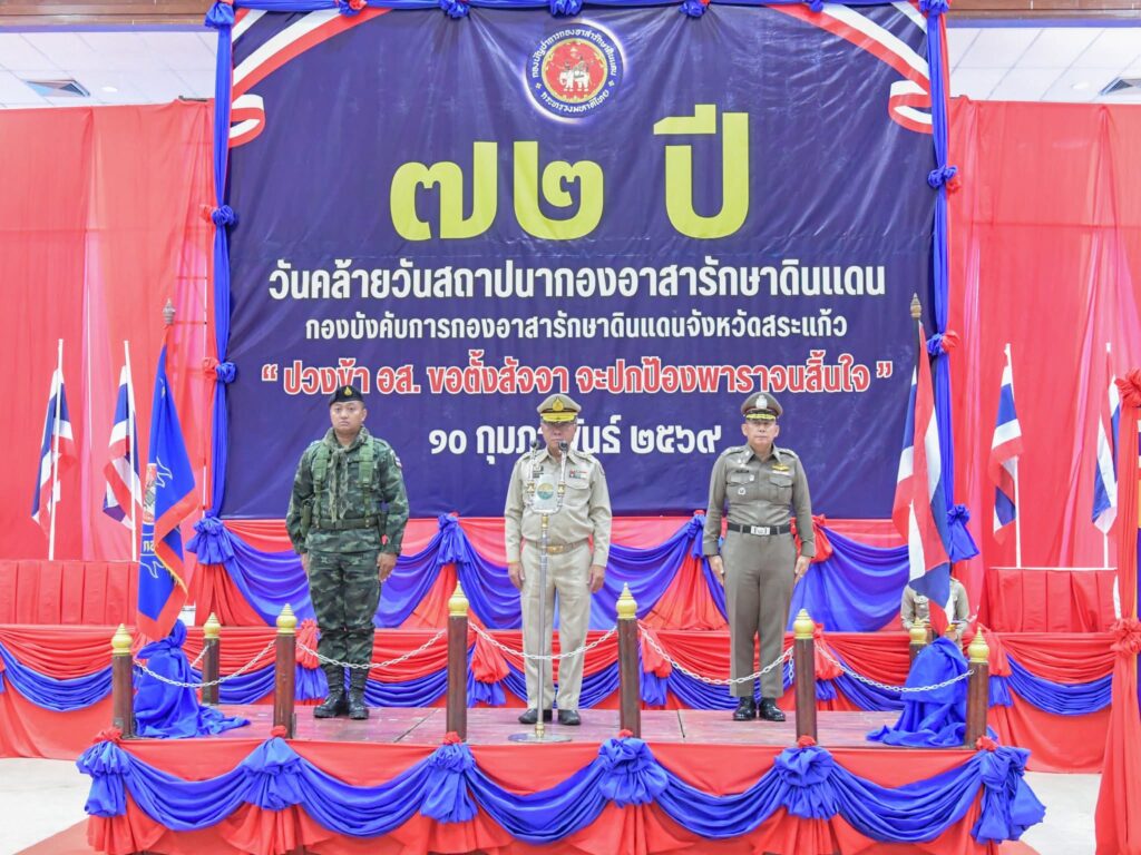 ✍️ จังหวัดสระแก้วจัดพิธีวันคล้ายวันสถาปนากองอาสารักษาดินแดน ครบรอบ ๗๒ ปี นายกองเอกเชาวเนตร ยิ้มประเสริฐ รองผู้บังคับการกองอาสารักษาดินแดนจังหวัดสระแก้ว เป็นประธานในพิธีวันคล้ายวันสถาปนากองอาสารักษาดินแดน ประจำปี ๒๕๖๙ โดยมีคณะผู้บังคับบัญชา เจ้าหน้าที่ สมาชิกกองอาสารักษาดินแดน และสมาชิกแม่บ้านมหาดไทยจังหวัดสระแก้วเข้าร่วมพิธีอย่างพร้อมเพรียง