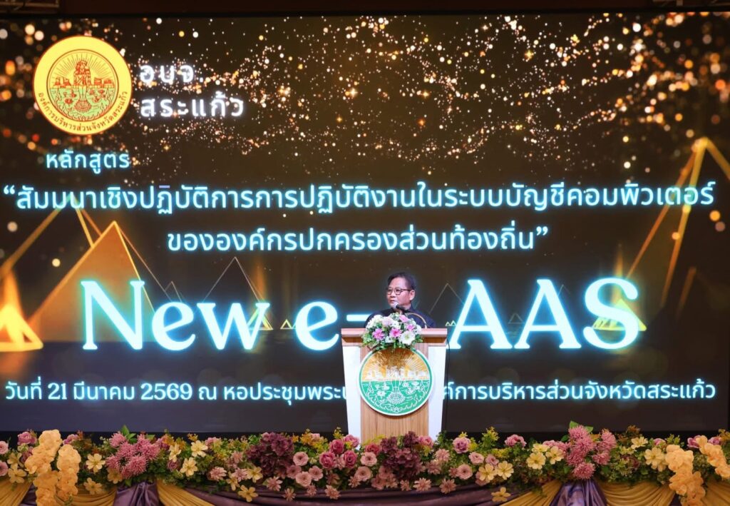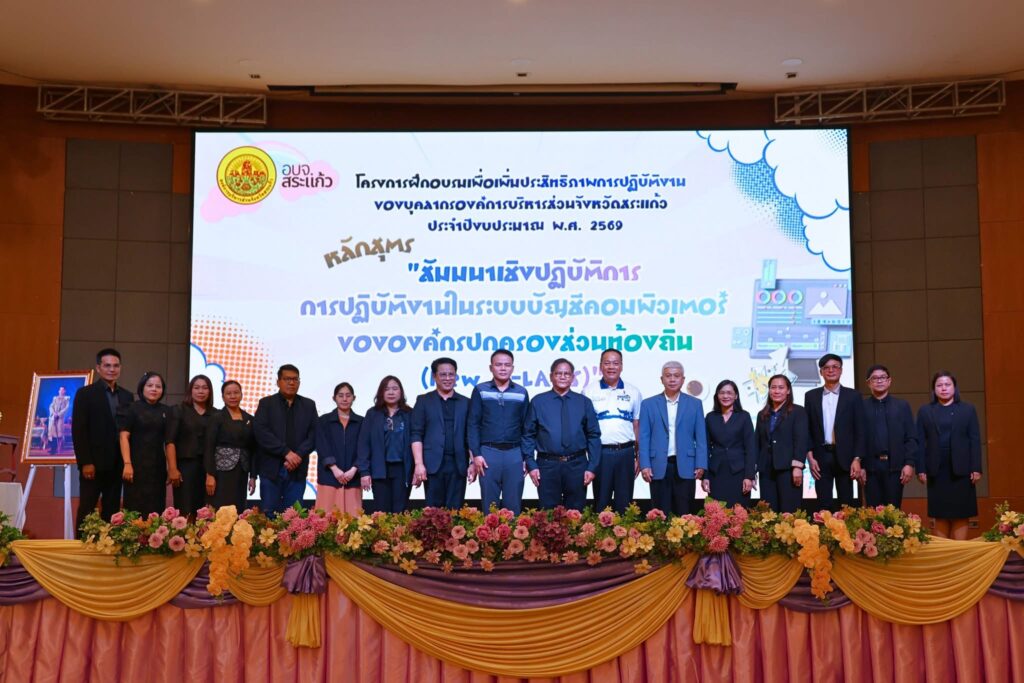 วันเสาร์ที่ 21 มีนาคม 2569 เวลา 09.00 น. นายฐานิสร์ เทียนทอง นายกองค์การบริหารส่วนจังหวัดสระแก้ว มอบหมายให้ นายวุฒิพงษ์ บ้านโพธิ์ ที่ปรึกษานายกองค์การบริหารส่วนจังหวัดสระแก้ว เป็นประธานการเปิดโครงการฝึกอบรมเพื่อเพิ่มประสิทธิภาพการปฏิบัติงานของบุคลากรองค์การบริหารส่วนจังหวัดสระแก้ว ประจำปีงบประมาณ พ.ศ. 2569 หลักสูตร “สัมมนาเชิงปฏิบัติการการปฏิบัติงานในระบบบบัญชีคอมพิวเตอร์ ขององค์กรปกครองส่วนท้องถิ่น (New e-LAAS)”