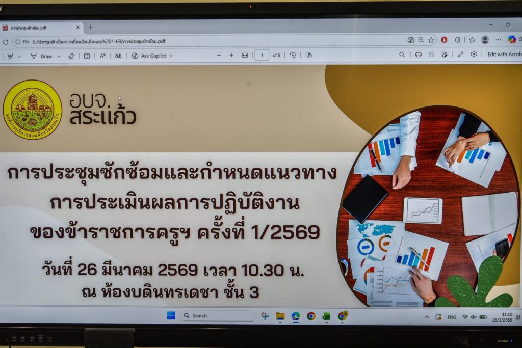⏳วันพฤหัสบดีที่ 26 มีนาคม พ.ศ. 2569 เวลา 09.30 น. นายนิธิศ ผดุงลักษณ์ รองปลัดองค์การบริหารส่วนจังหวัดสระแก้ว (2) เป็นประธานการประชุมซักซ้อมแนวทางการเลื่อนเงินเดือนของข้าราชการองค์การบริหารส่วนจังหวัด ณ ห้องประชุมบดินทรเดชา ชั้น 3 องค์การบริหารส่วนจังหวัดสระแก้ว